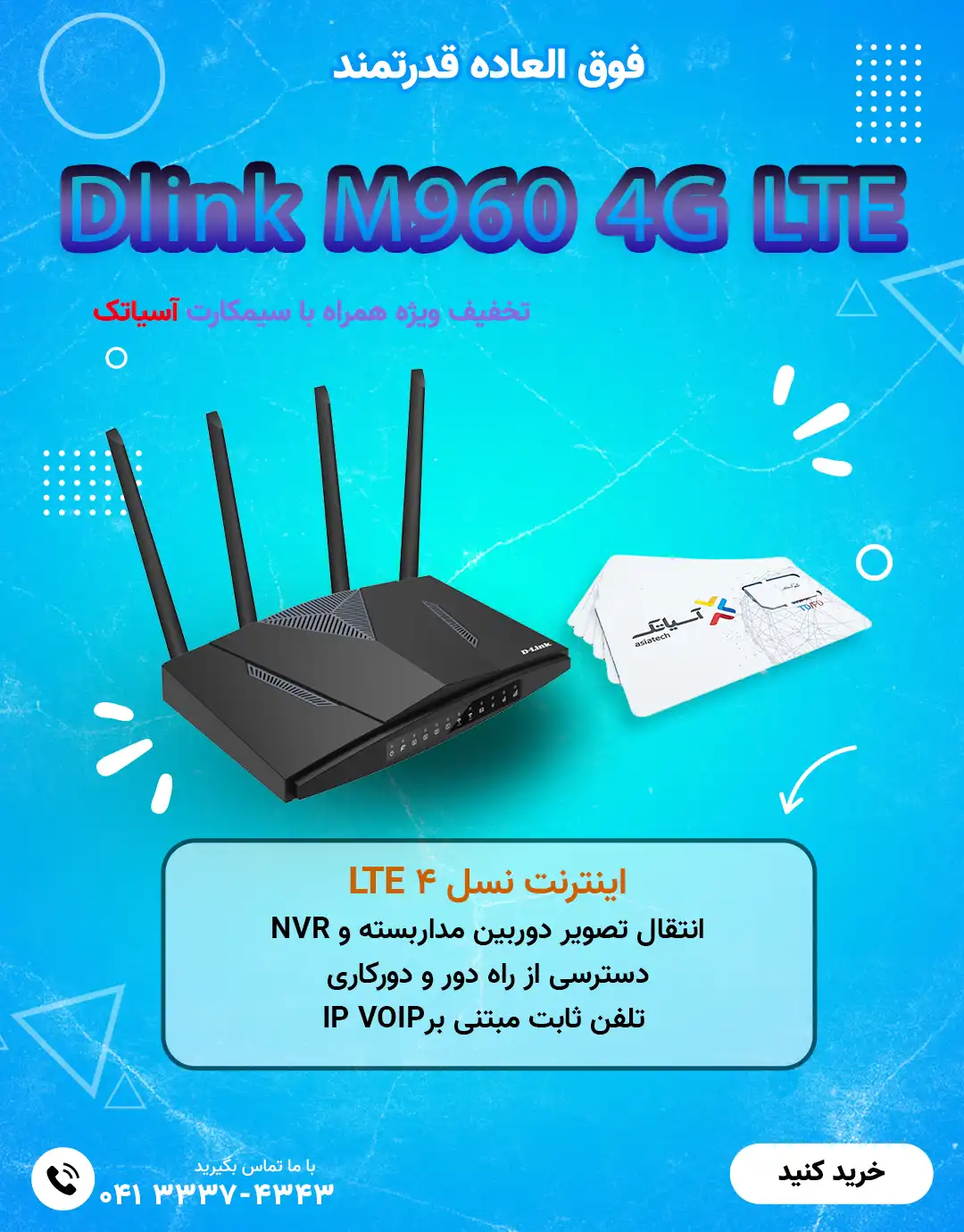 مودم D-Link M960 + سیمکارت 4G آسیاتک با IP ثابت اختصاصی